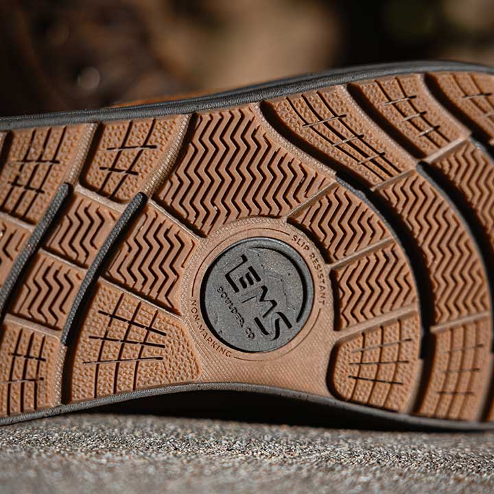 This boot is equipped with a slip resistant, non-marking rubber outsole that utilizes zig-zag grooves and grippy textures to ensure your feet remain grounded in slippery situations.